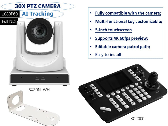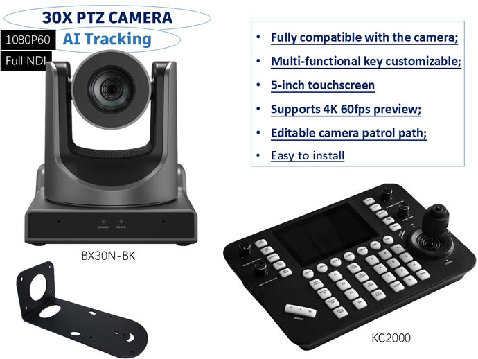 Promotion Bundle, 1x SMTAV 30X 1080P60 AI Tracking NDI PTZ Camera(Black) + 1x SMTAV Camera Super Controller