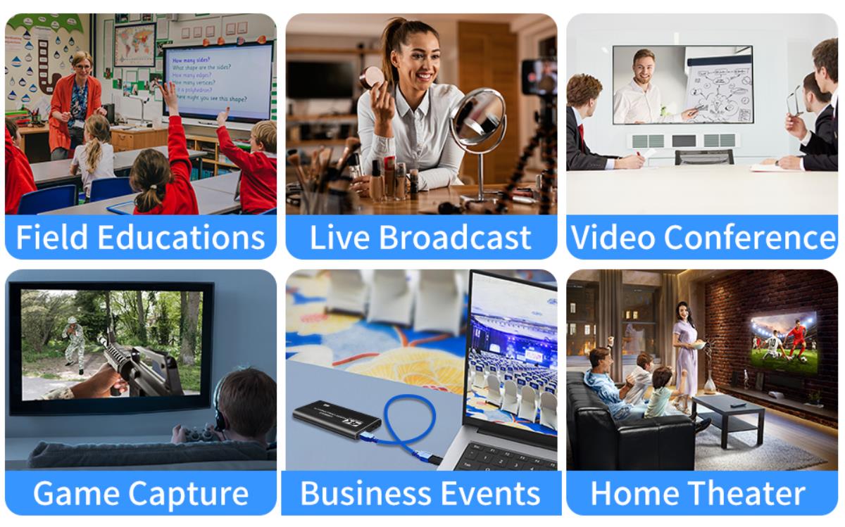 This newest USB3.0 audio Video capture card with Audio Input/Output, HDMI Signal Loop Out supports 1920x1080 resolution, It can be used for video conference, game collection, multimedia teaching scenario, etc, it has superior performance and compatibility than the previous versions.