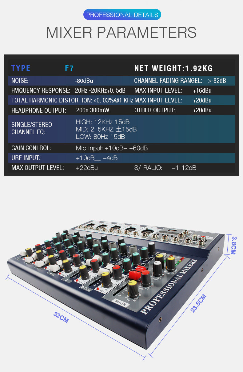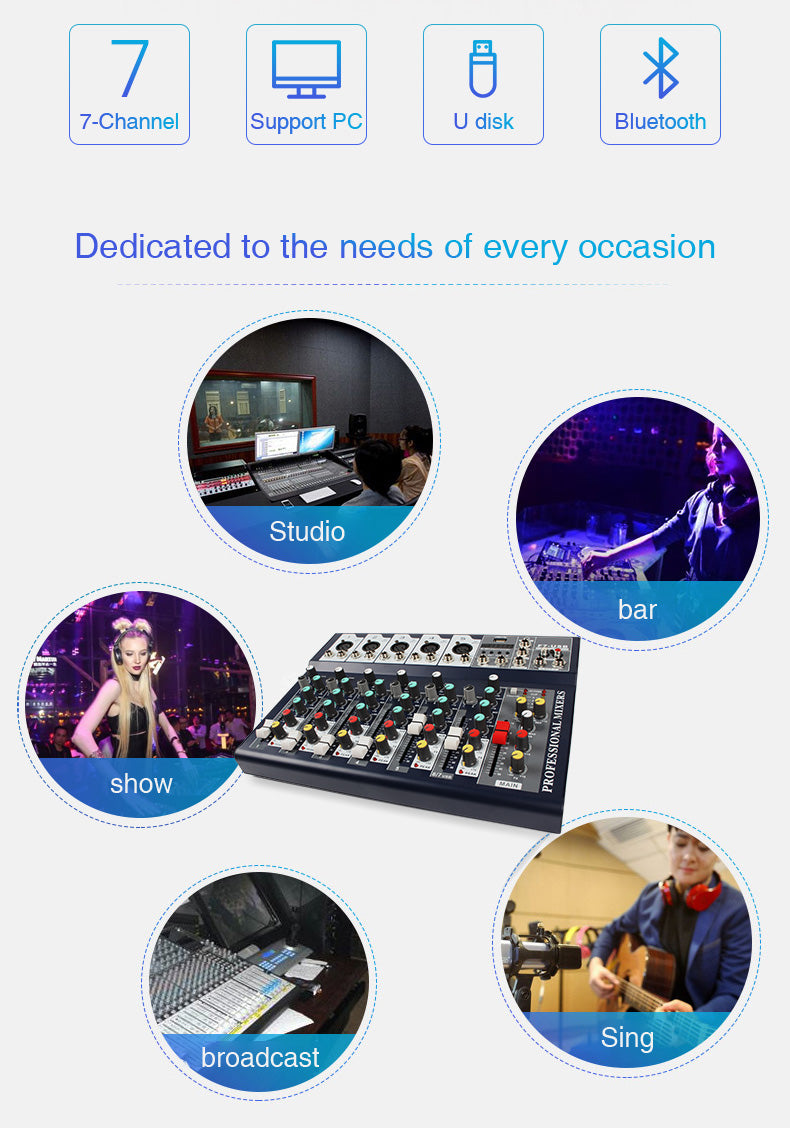 Each mono channel has three balanced sections, which can process music and human voice at any time, high frequency / medium tone / low tone.