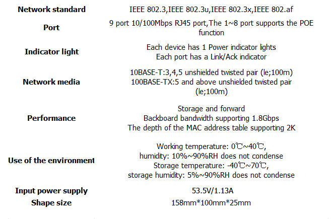 Die PoE-Leistung eines einzelnen Ports kann 15,4 W erreichen und die PoE-Ausgangsleistung der gesamten Maschine beträgt 57 W.