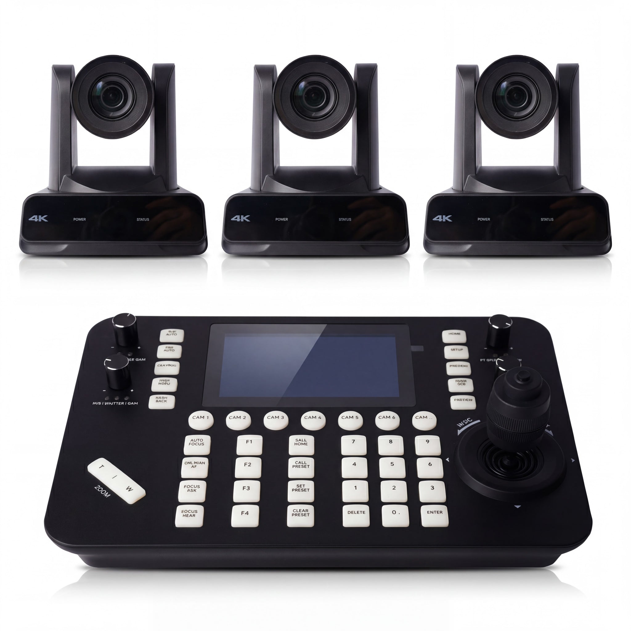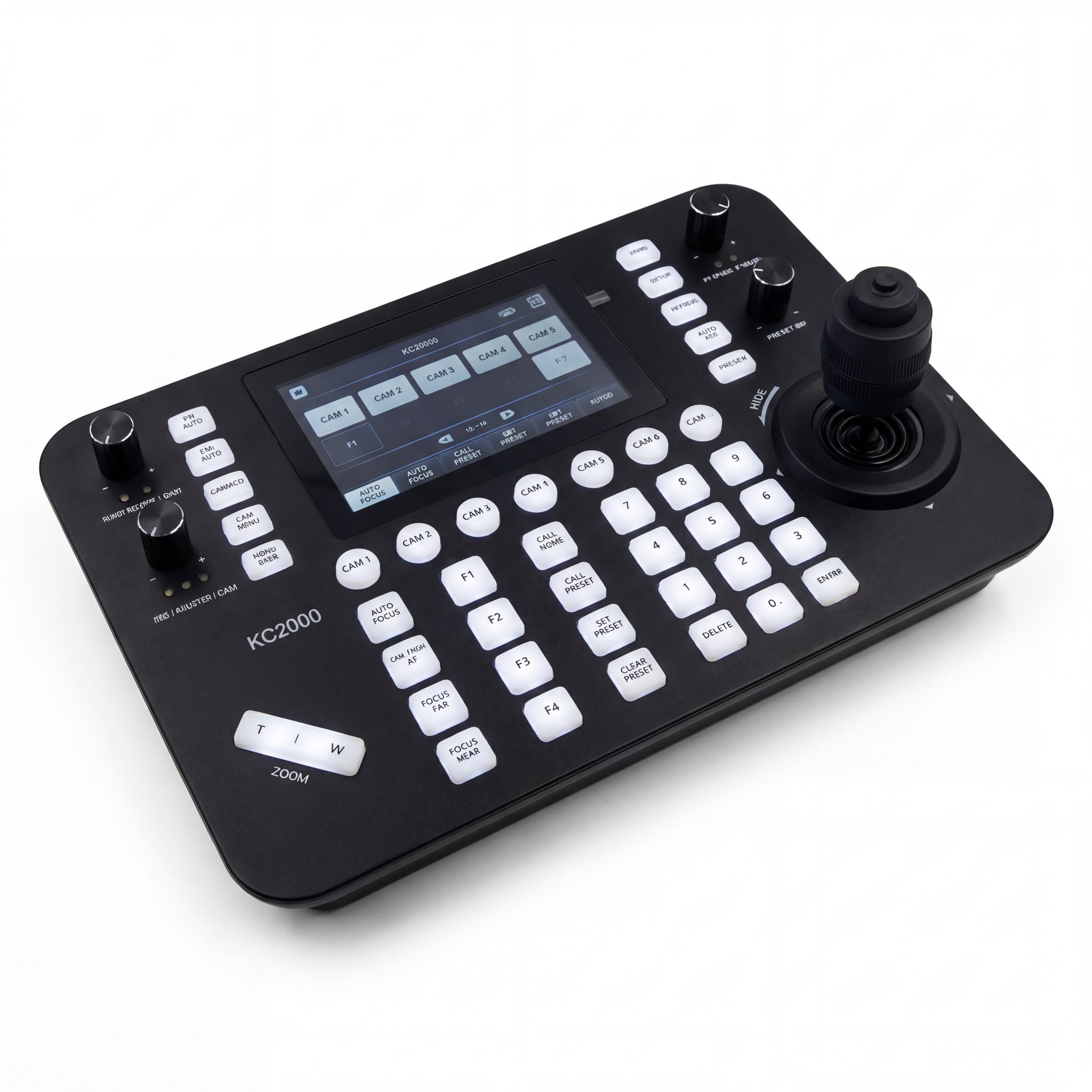 Professional Controller The KC2000 gives you broadcast-grade control with real-time preview, preset recall, and intuitive joystick operation. Control all 3 cameras from one central workstation.