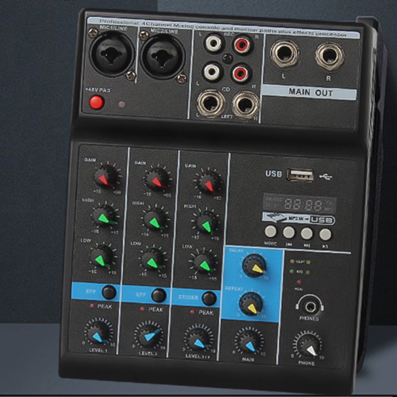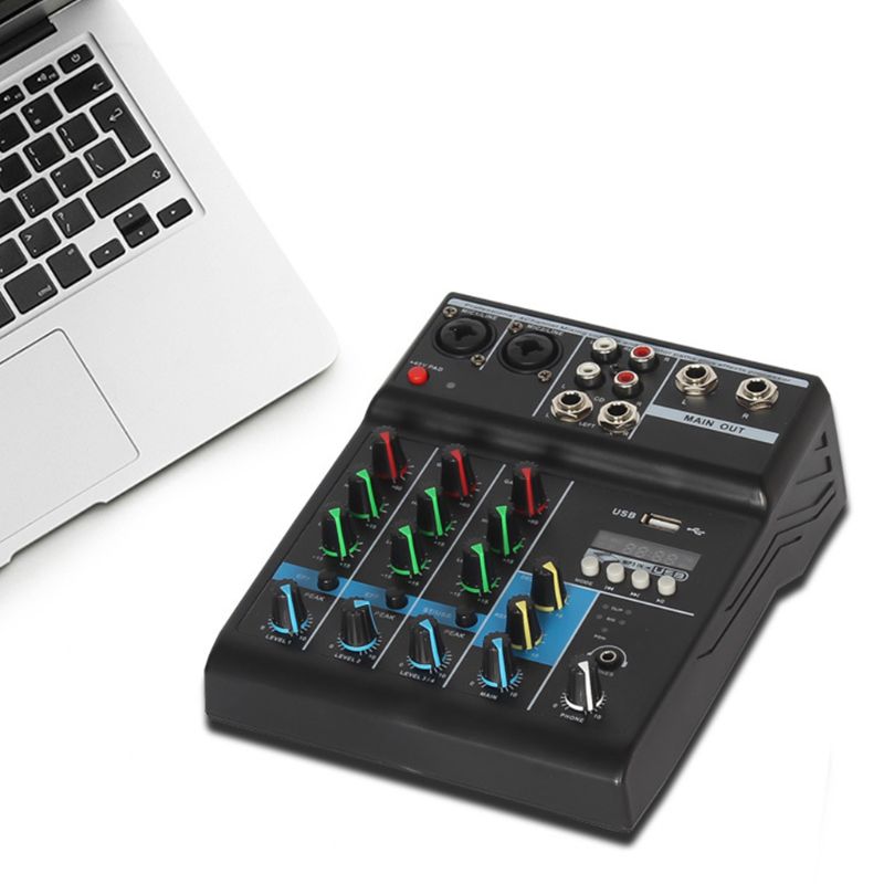 This mixer is a multi-purpose 4-channel mixer with a sound card, which can meet the needs of users' home music production, net-work live broadcast, K song cover and so on.